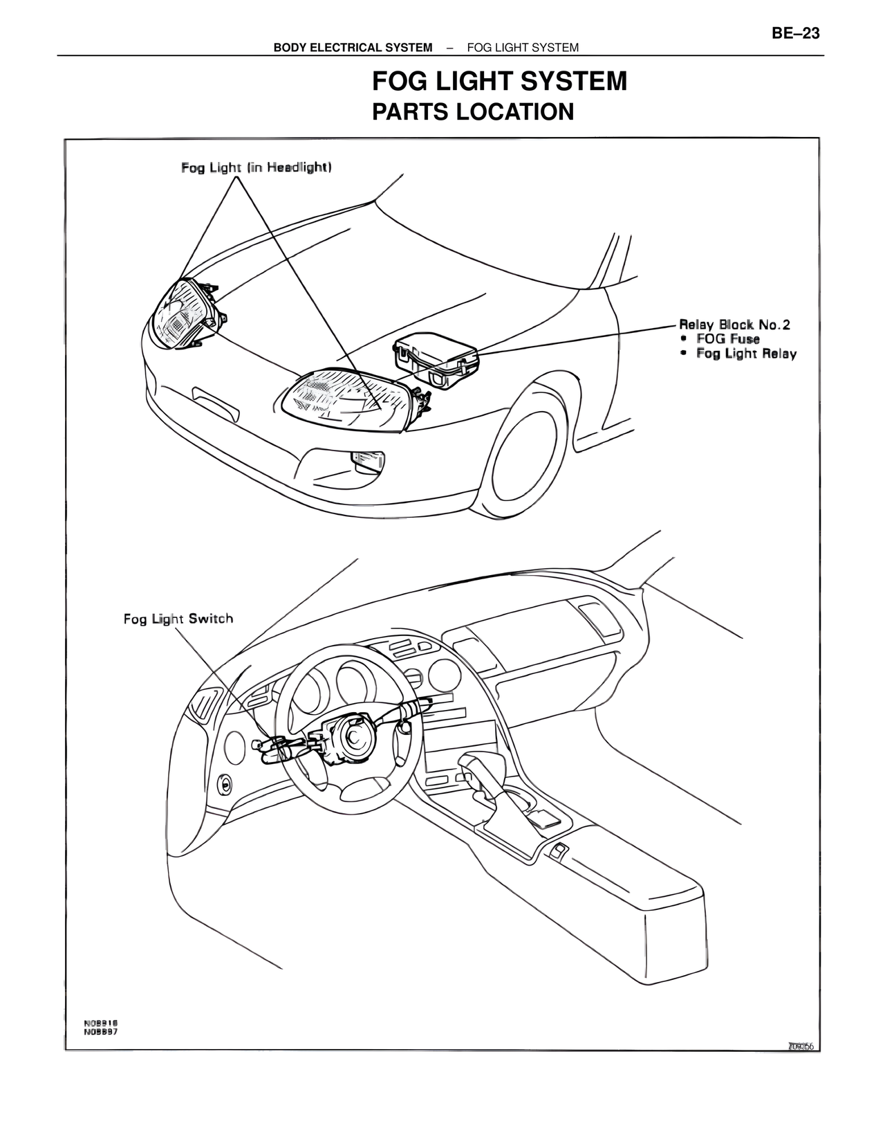 FOG LIGHT SYSTEM PARTS LOCATION Fog Light (in Headlight) Relay Block No. 2 • FOG Fuse • Fog Light Relay Fog Light Switch N08916 N08897 210056