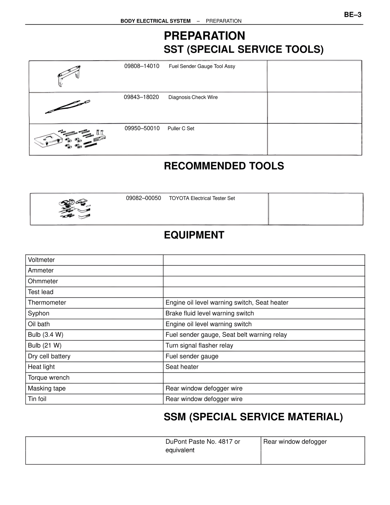 BODY ELECTRICAL SYSTEM – PREPARATION