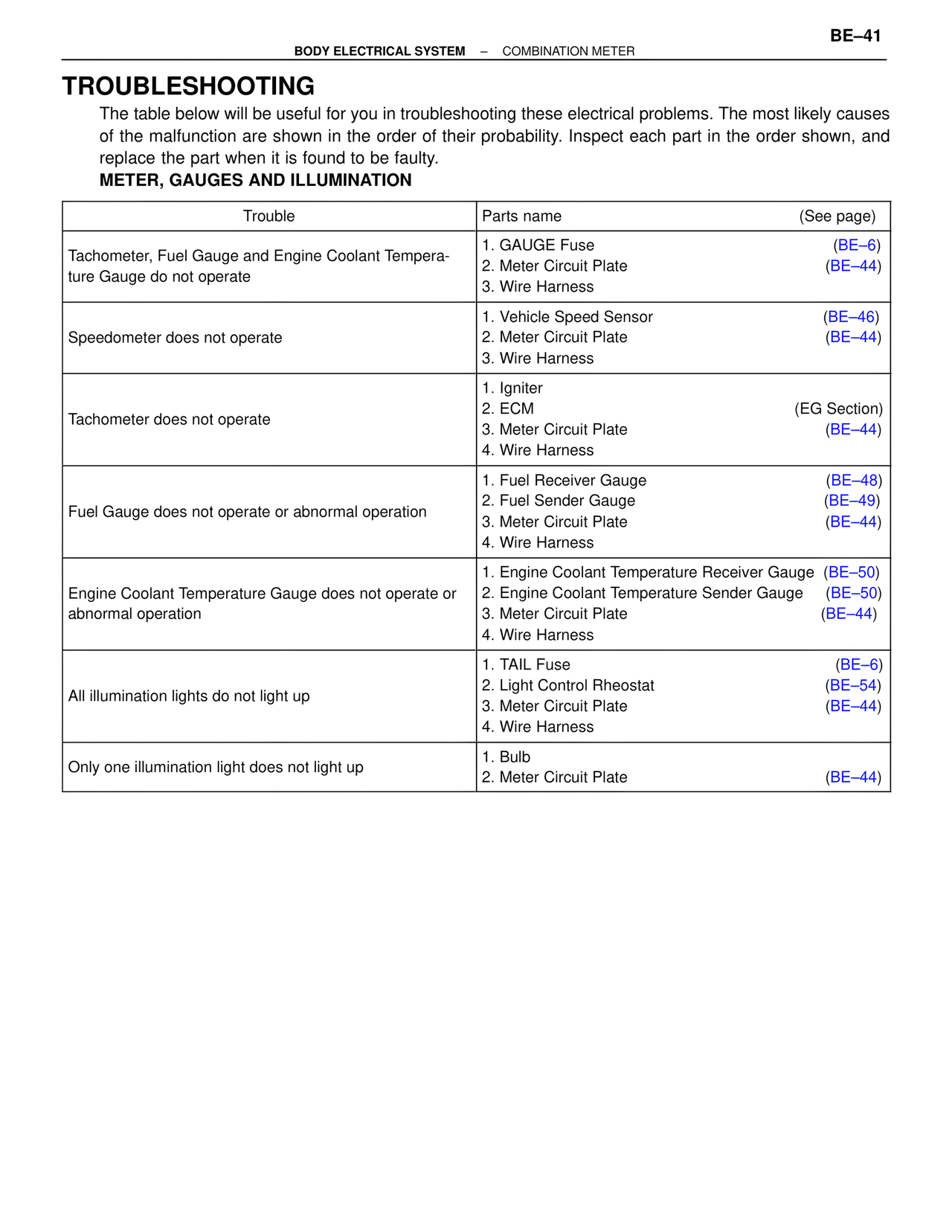 1. Engine Coolant Temperature Receiver Gauge (BE–50)