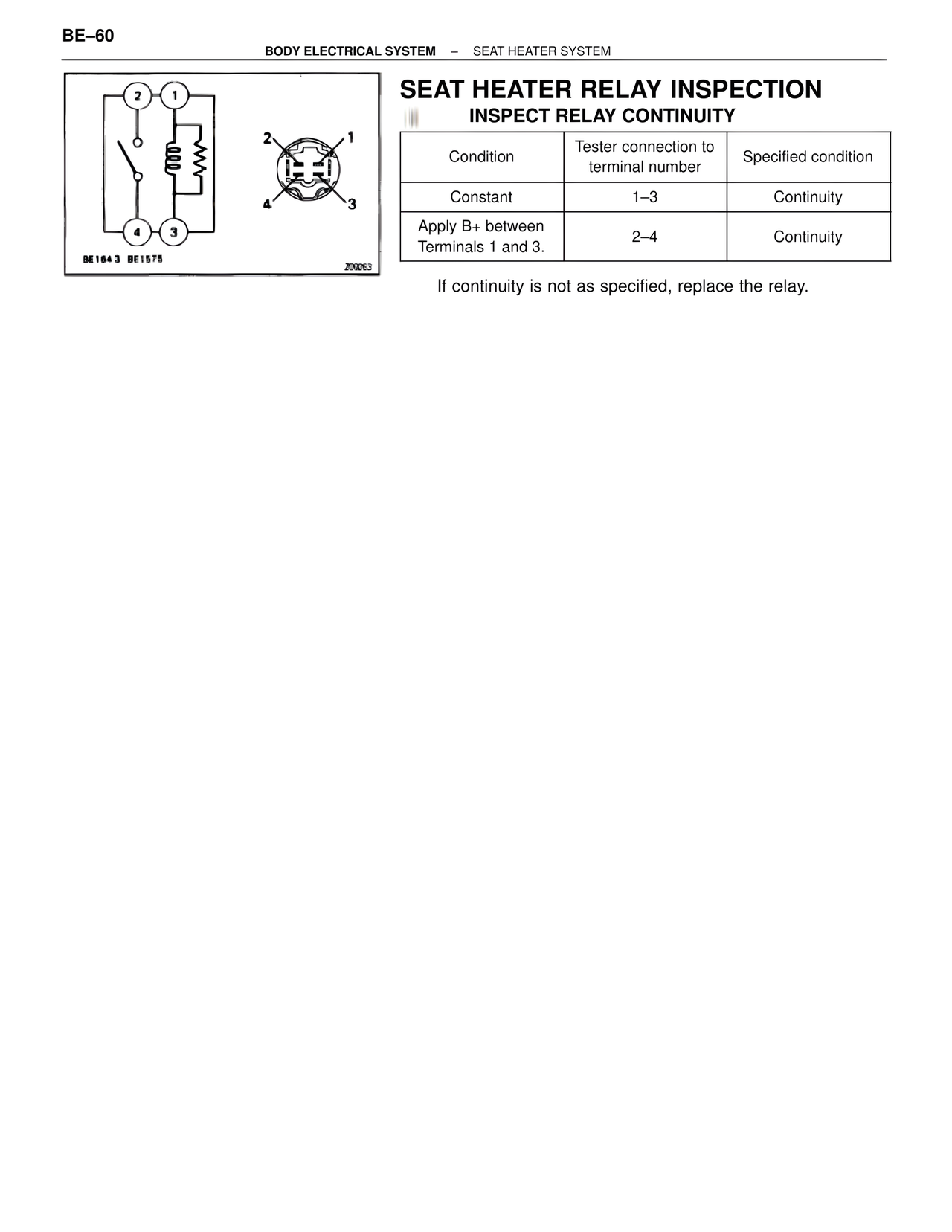 SEAT HEATER RELAY INSPECTION