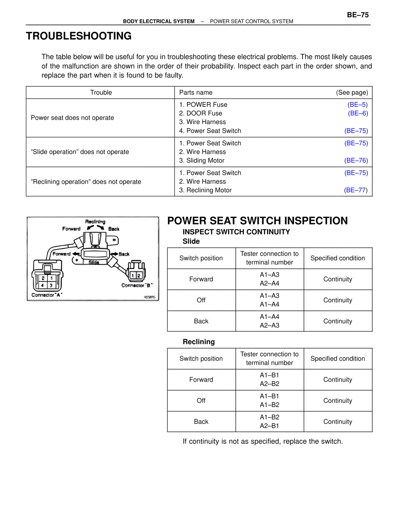1. Power Seat Switch | (BE–75)