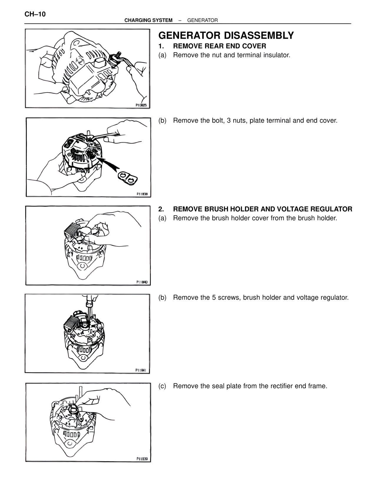 (b) Remove the 5 screws, brush holder and voltage regulator.
