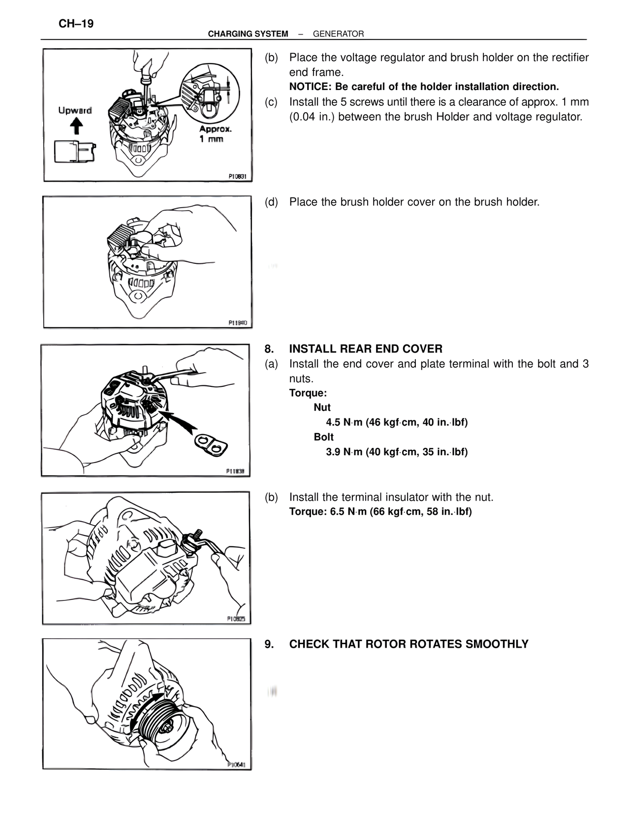 (c) Install the 5 screws until there is a clearance of approx. 1 mm (0.04 in.) between the brush Holder and voltage regulator.