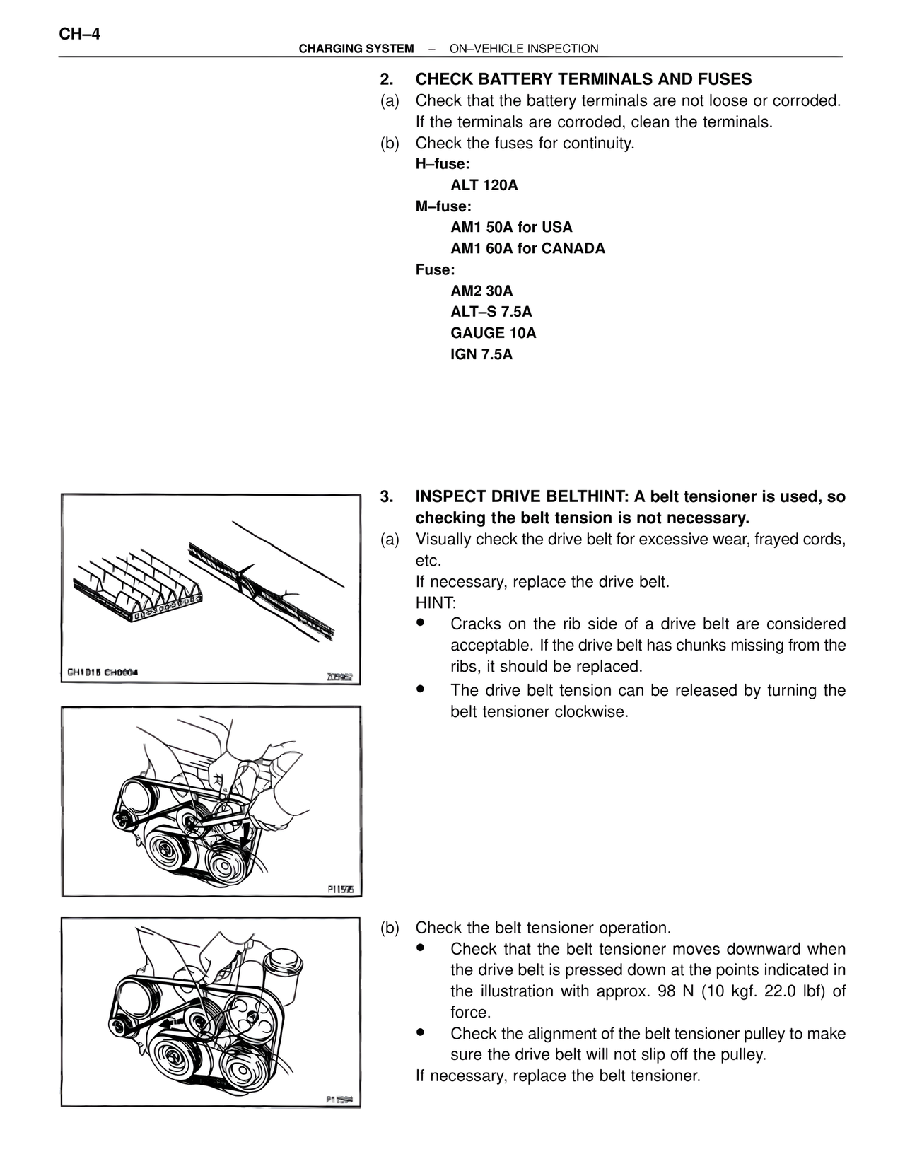 CHARGING SYSTEM – ON–VEHICLE INSPECTION