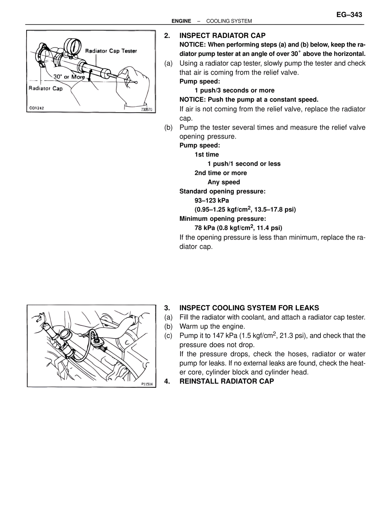 (a) Fill the radiator with coolant, and attach a radiator cap tester.