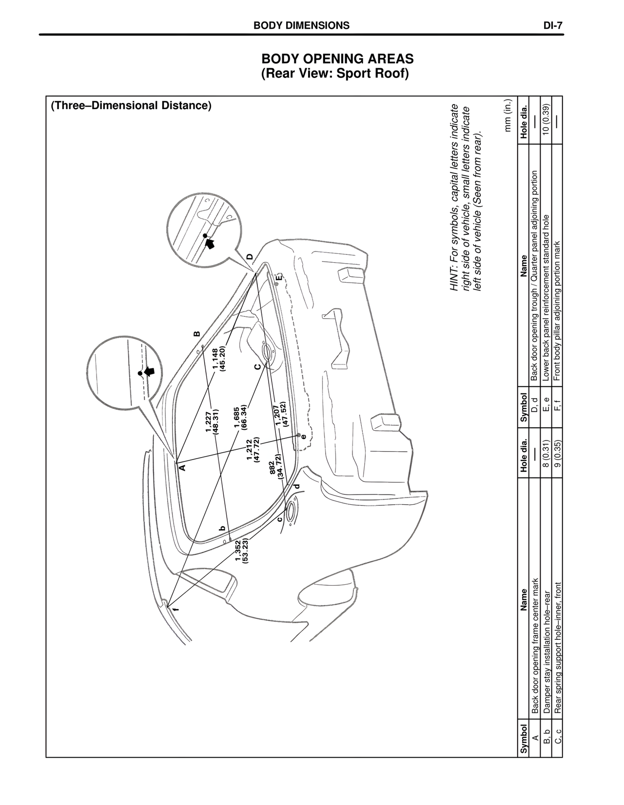 B, b | Damper stay installation hole–rear | 8 (0.31)