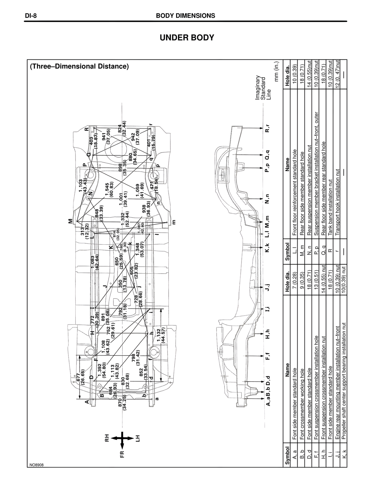 I, i | Front side member standard hole | 18 (0.71)