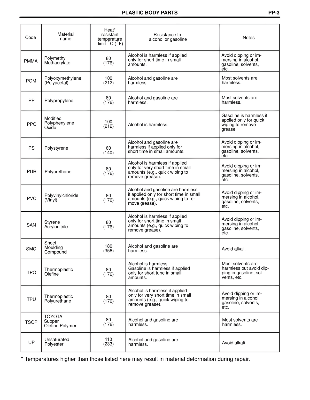 TSOP TOYOTA Supper Olefine Polymer 80 (176) Alcohol and gasoline are harmless. Most solvents are harmless.