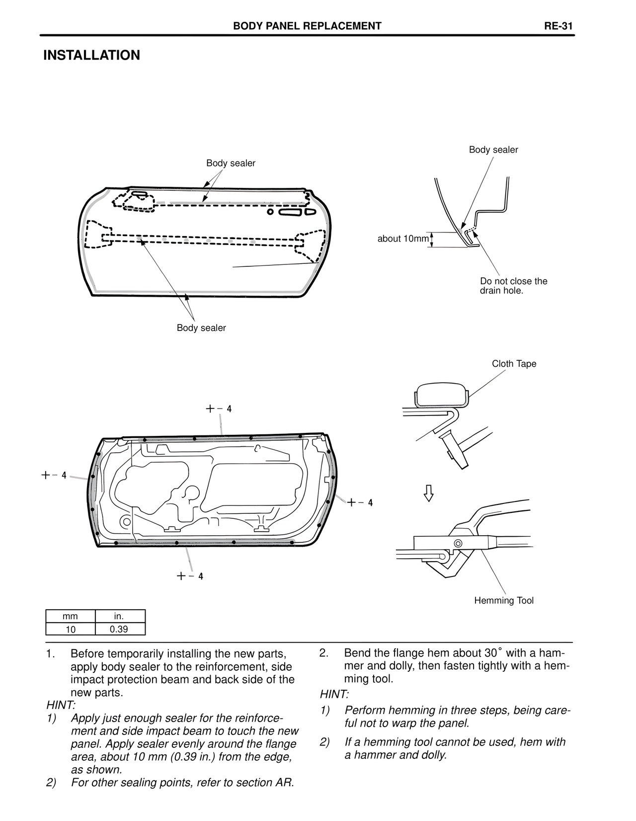 2) For other sealing points, refer to section AR.