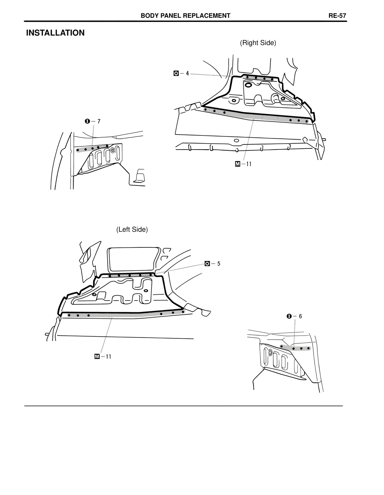 BODY PANEL REPLACEMENT RE-57 INSTALLATION (Right Side) O - 4 O - 7 M - 11 (Left Side) O - 5 M - 11 O - 6