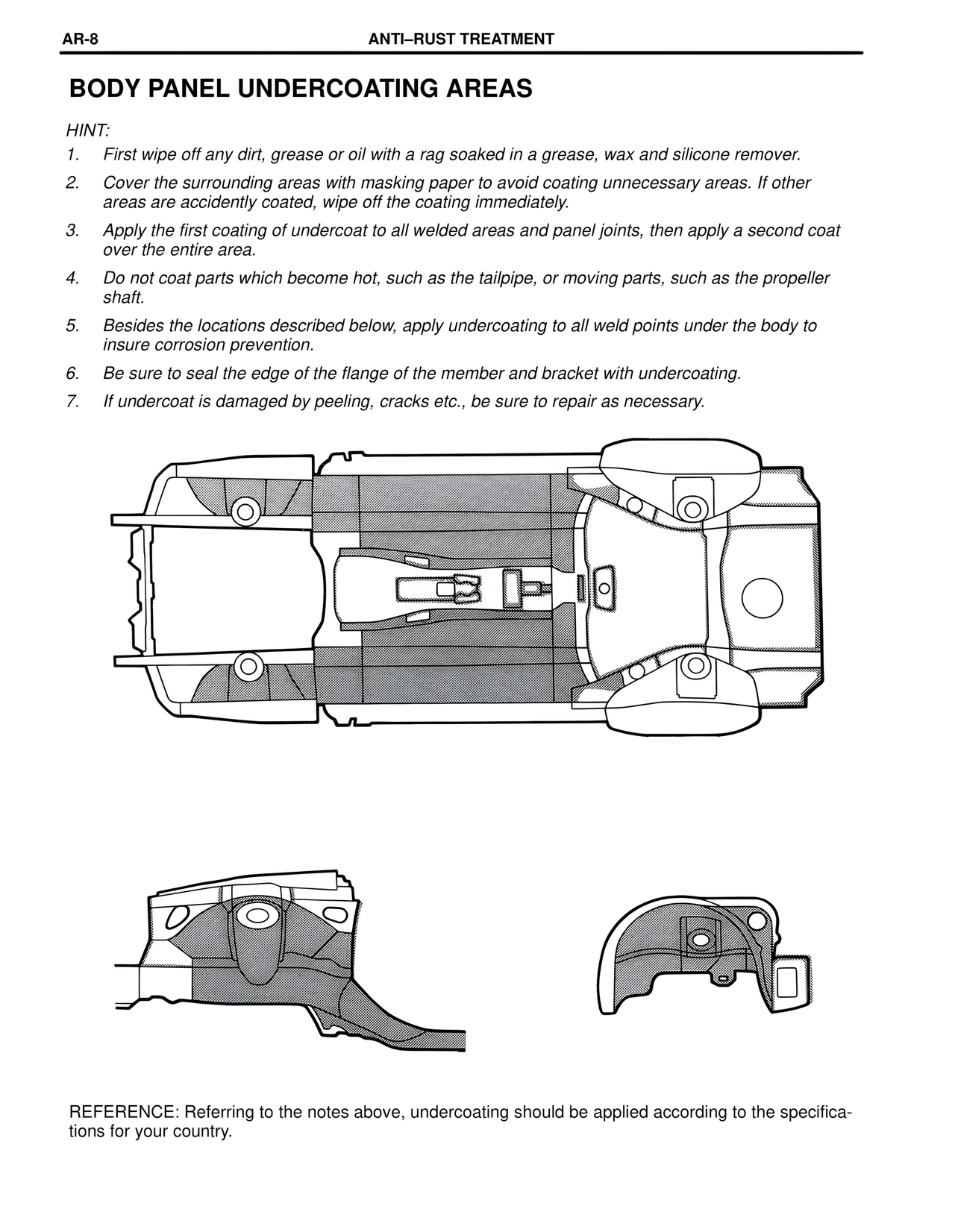 REFERENCE: Referring to the notes above, undercoating should be applied according to the specifications for your country.