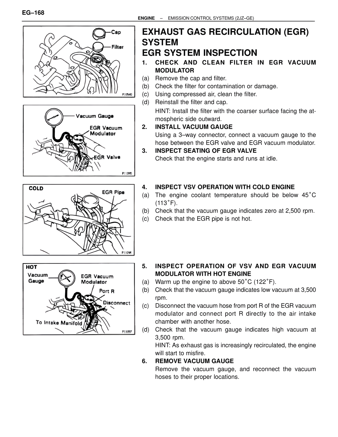 1. CHECK AND CLEAN FILTER IN EGR VACUUM