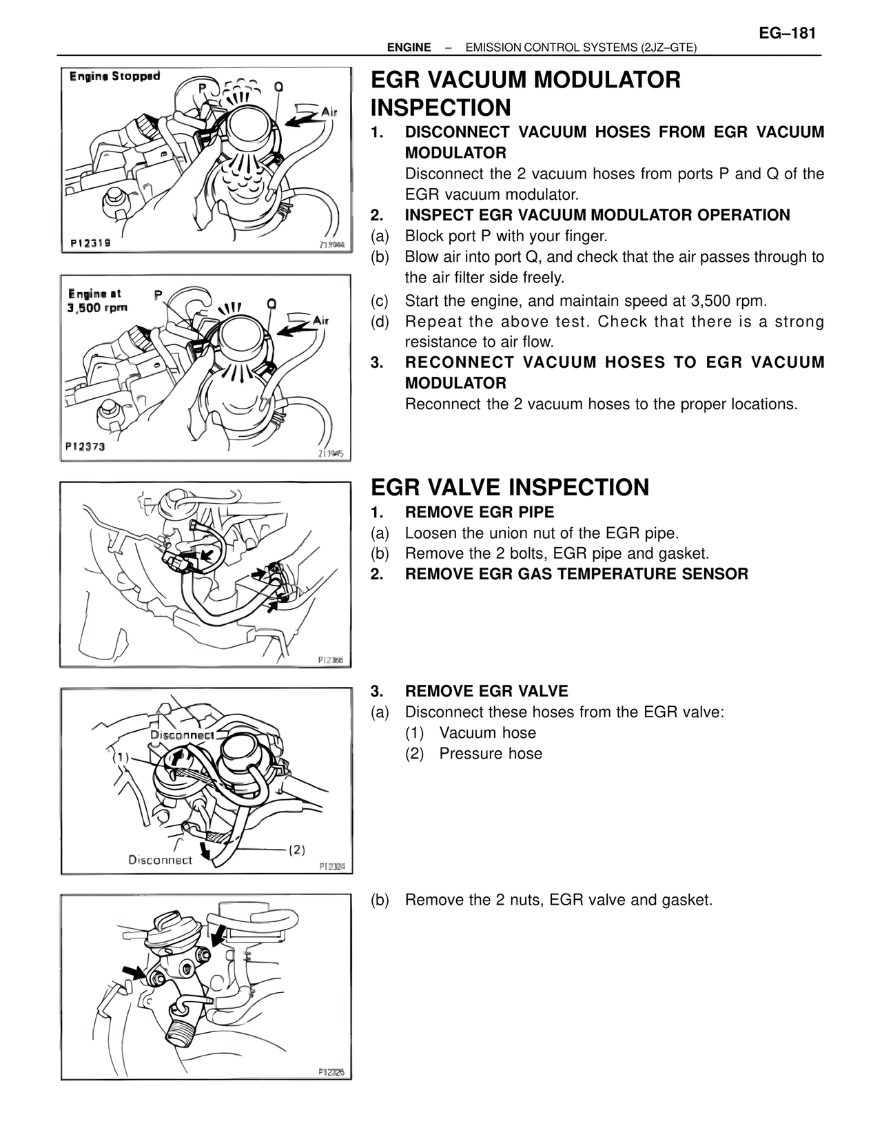 Disconnect the 2 vacuum hoses from ports P and Q of the EGR vacuum modulator.