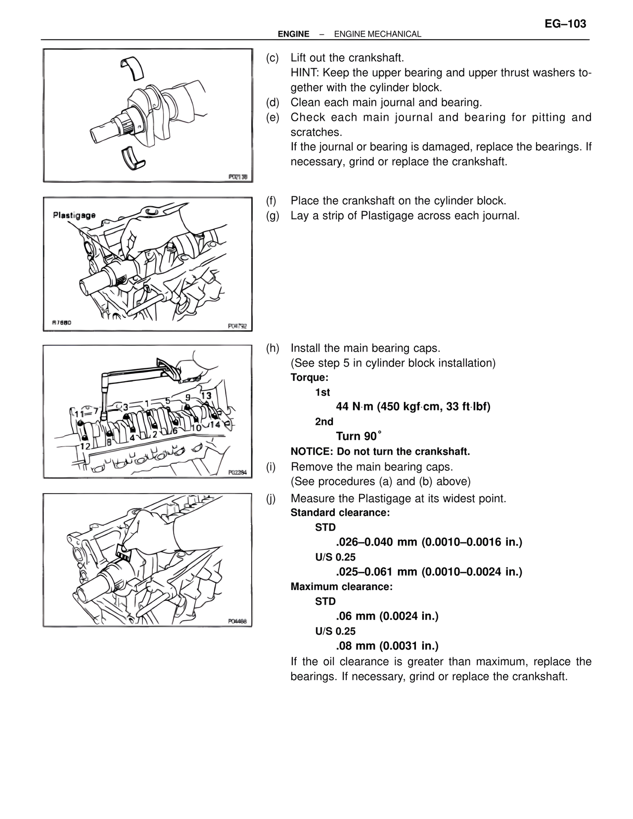 If the oil clearance is greater than maximum, replace the bearings. If necessary, grind or replace the crankshaft.