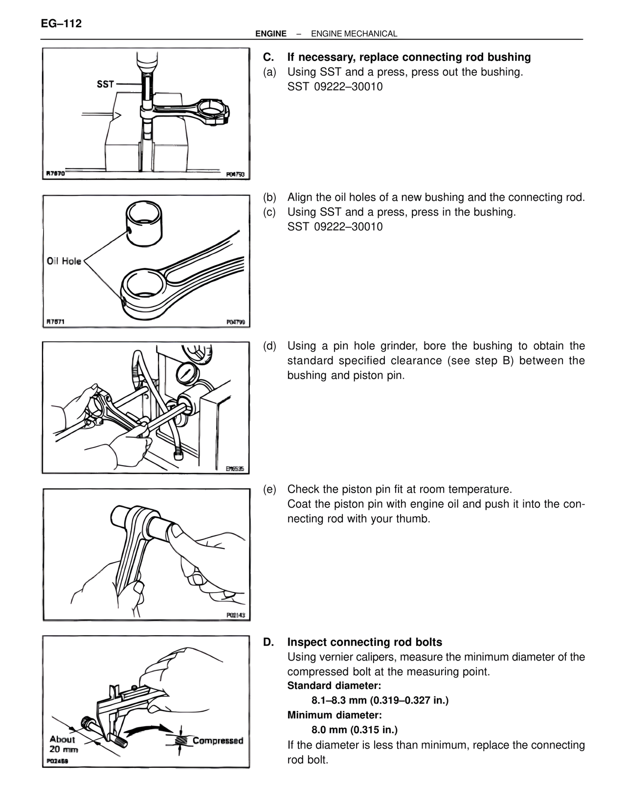 (b) Align the oil holes of a new bushing and the connecting rod.
