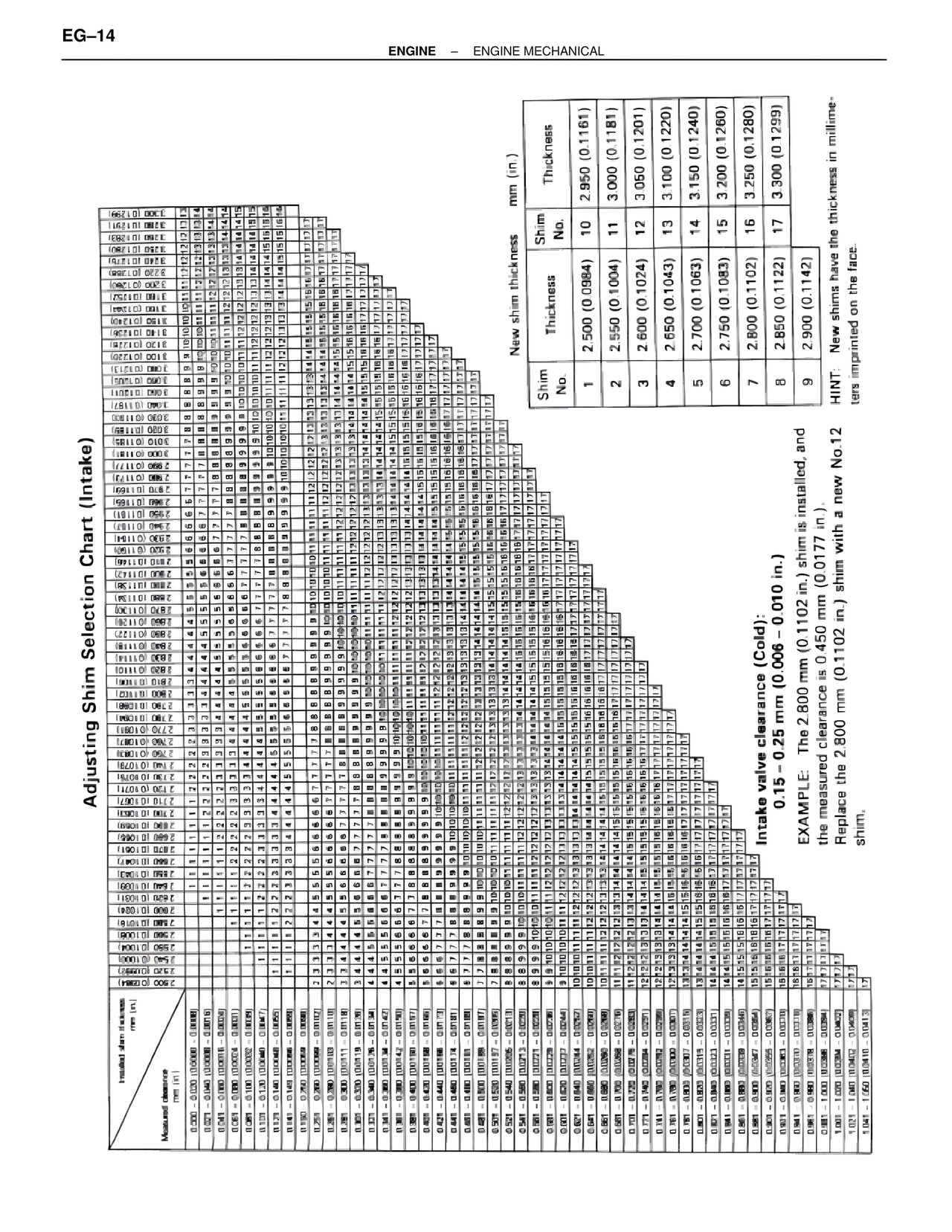 Adjusting Shim Selection Chart (Intake)
