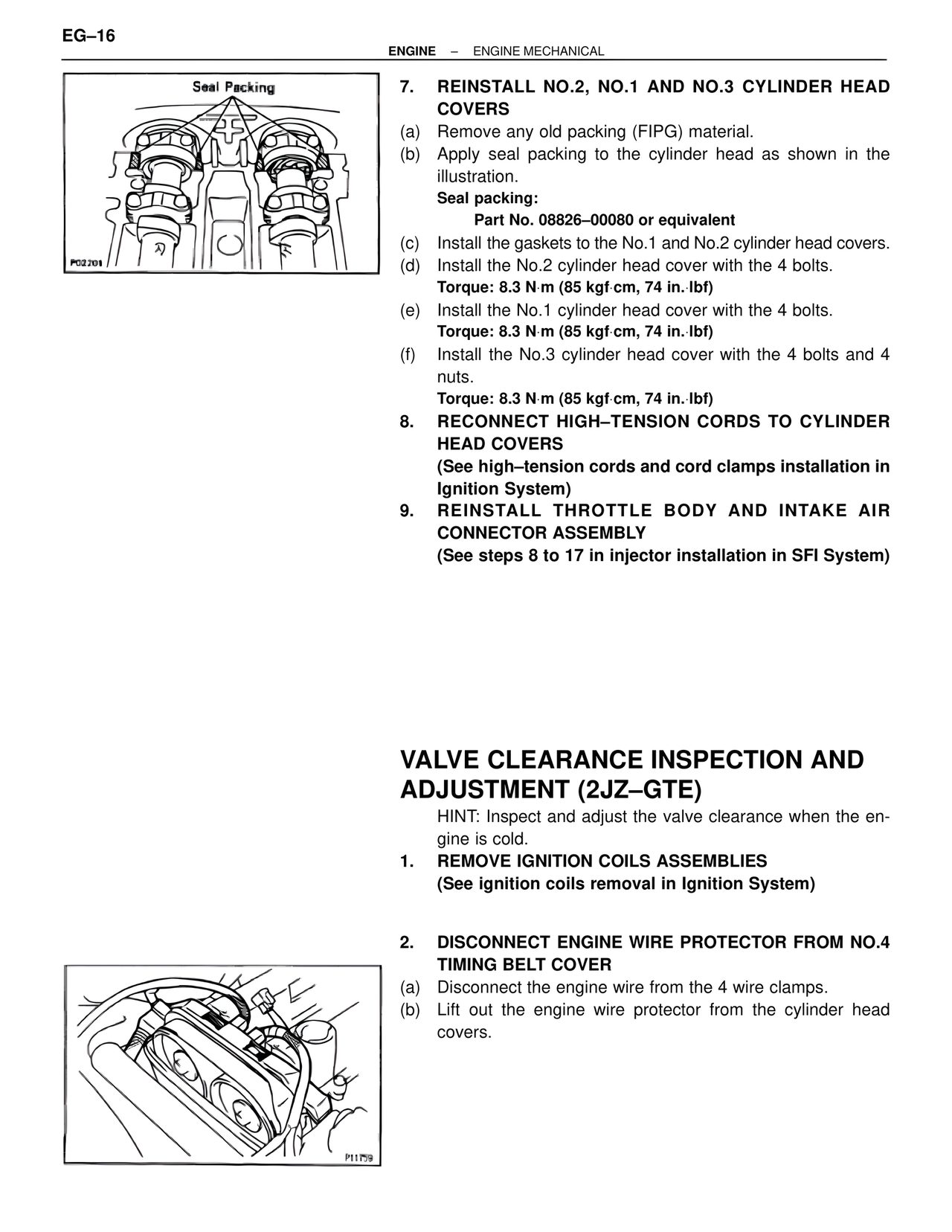 VALVE CLEARANCE INSPECTION AND ADJUSTMENT (2JZ–GTE)