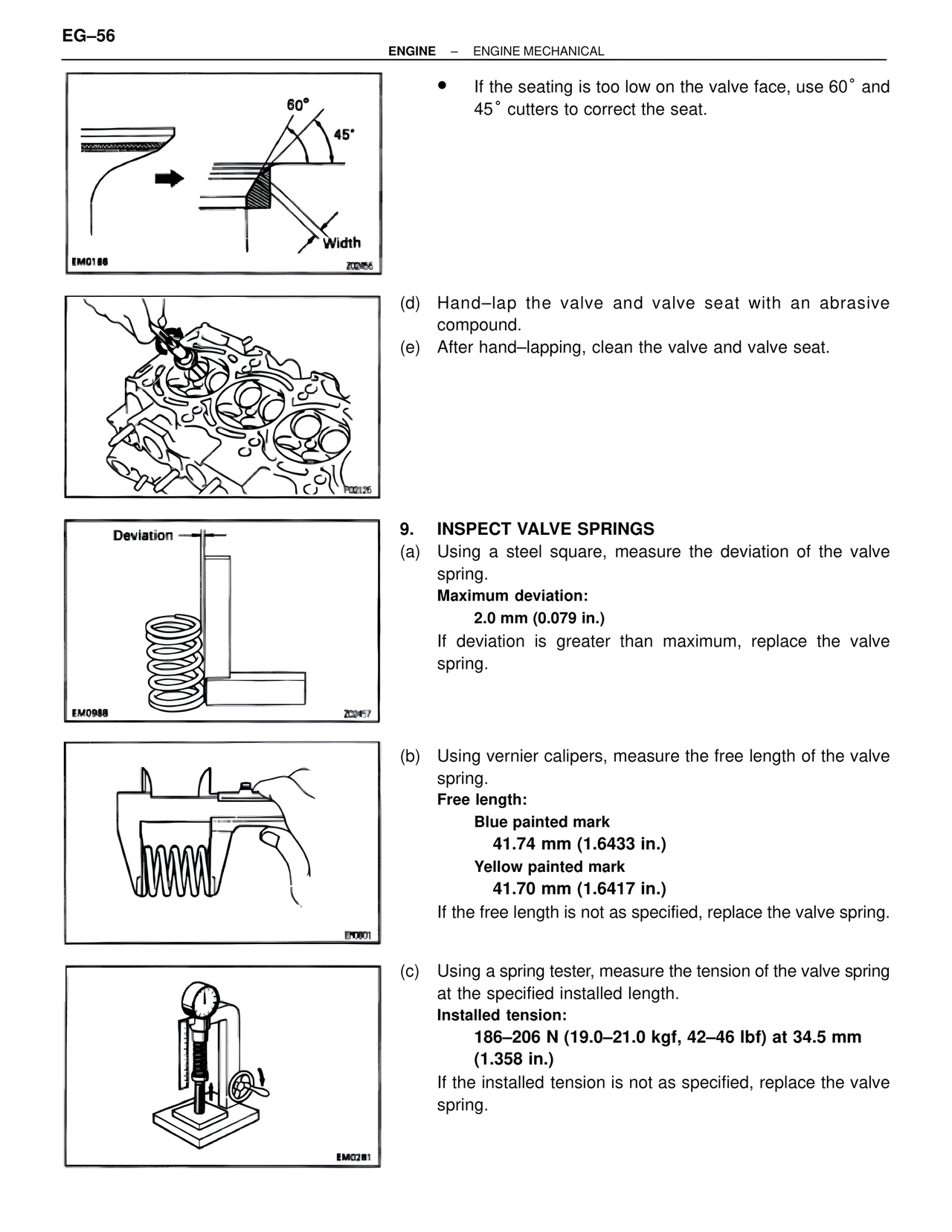 (e) After hand–lapping, clean the valve and valve seat.
