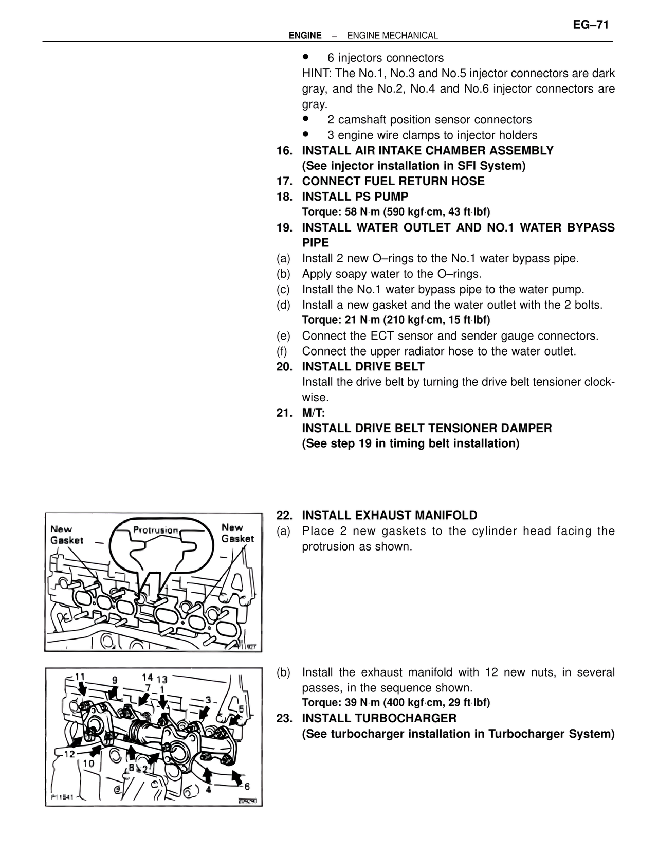 (b) Install the exhaust manifold with 12 new nuts, in several
