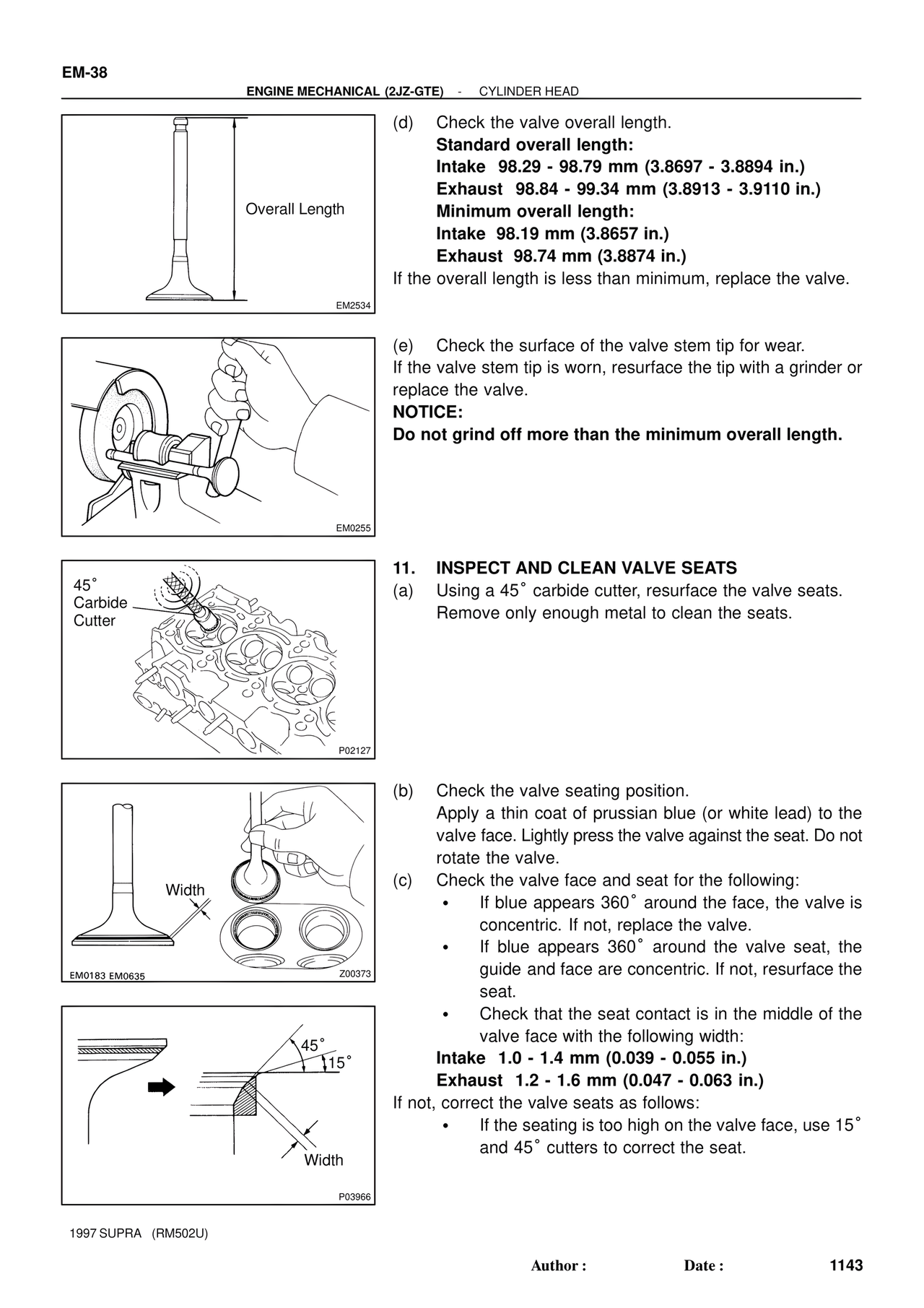 (a) Using a 45° carbide cutter, resurface the valve seats.