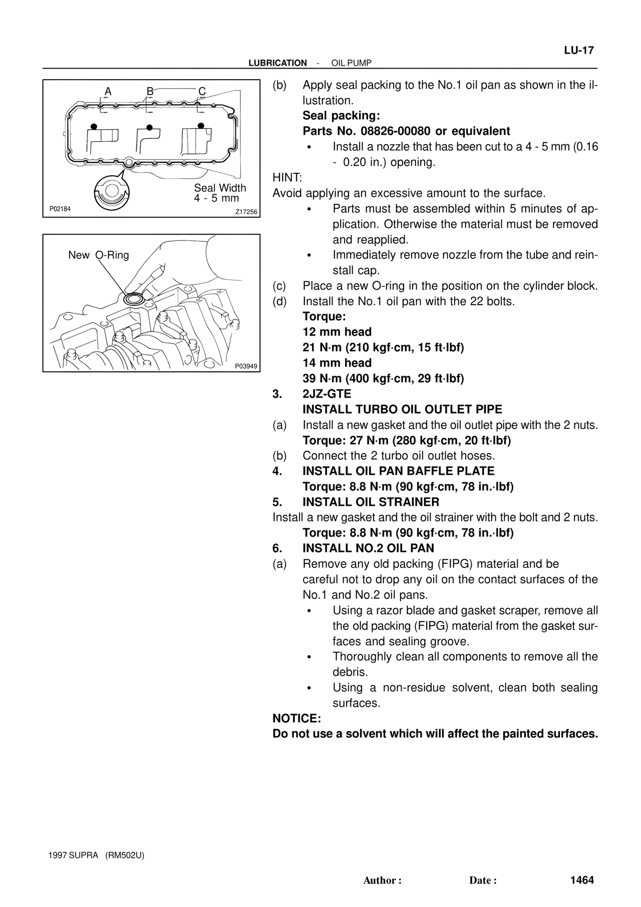 (b) Apply seal packing to the No.1 oil pan as shown in the illustration.