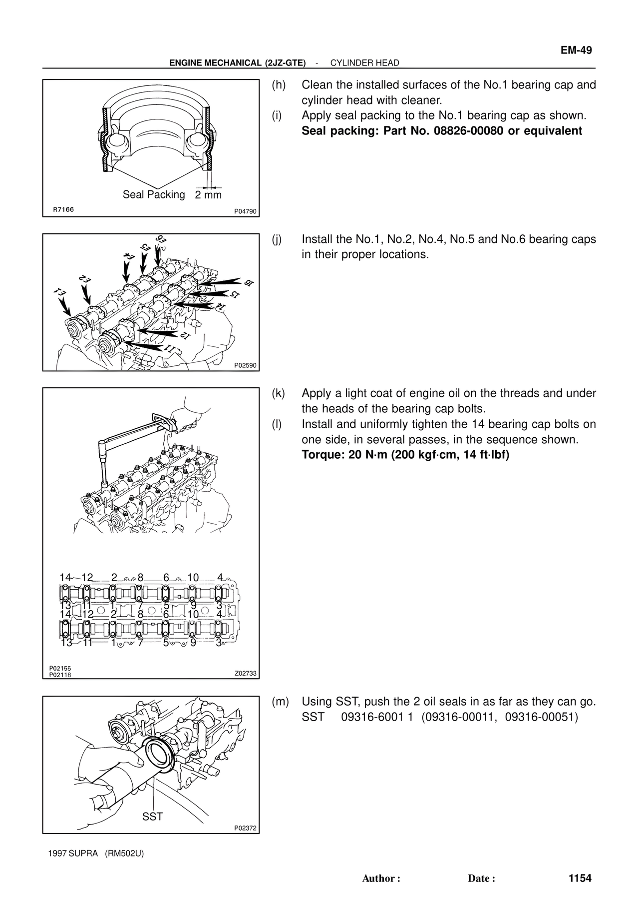 (l) Install and uniformly tighten the 14 bearing cap bolts on