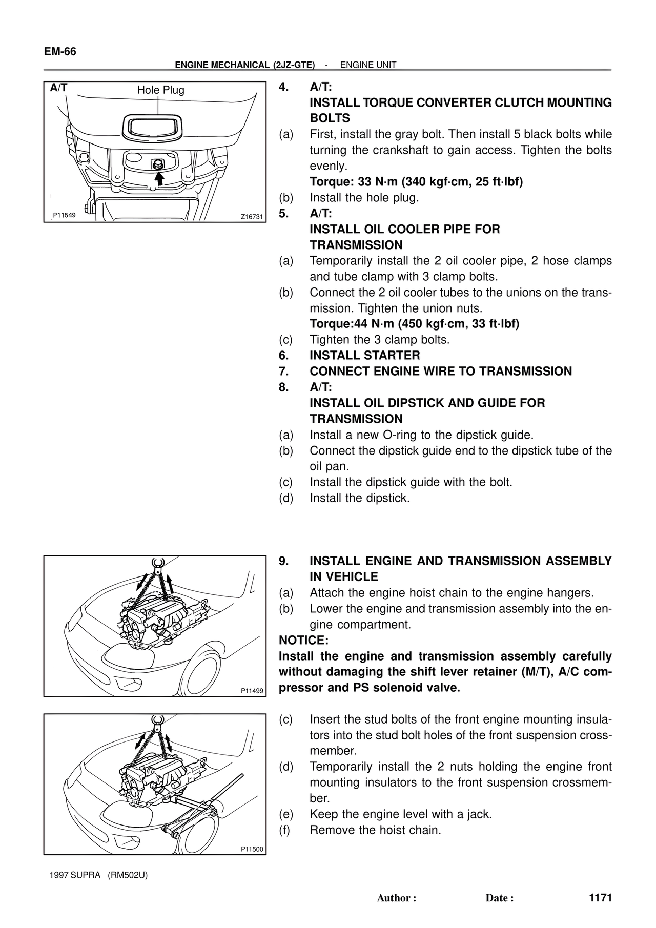 9. INSTALL ENGINE AND TRANSMISSION ASSEMBLY