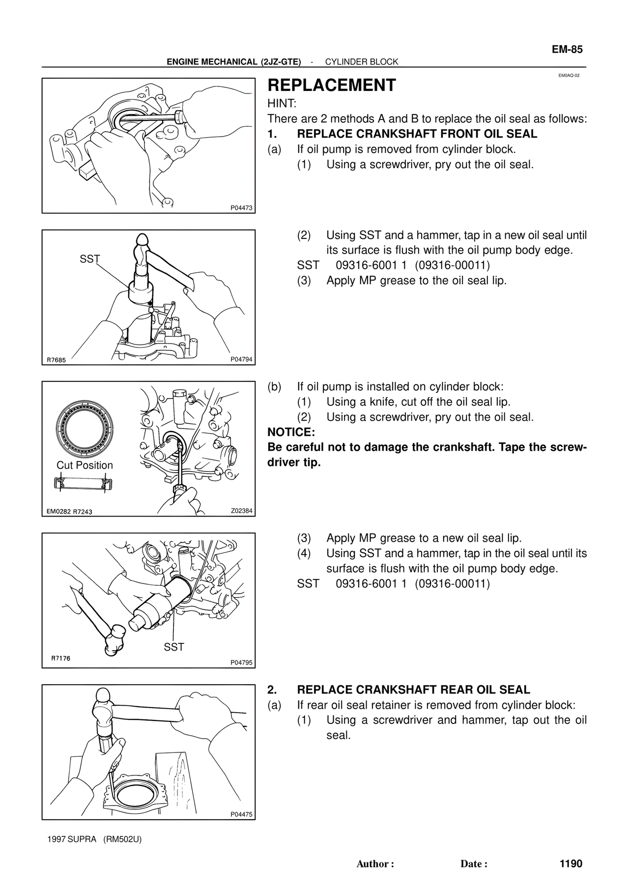 1. REPLACE CRANKSHAFT FRONT OIL SEAL