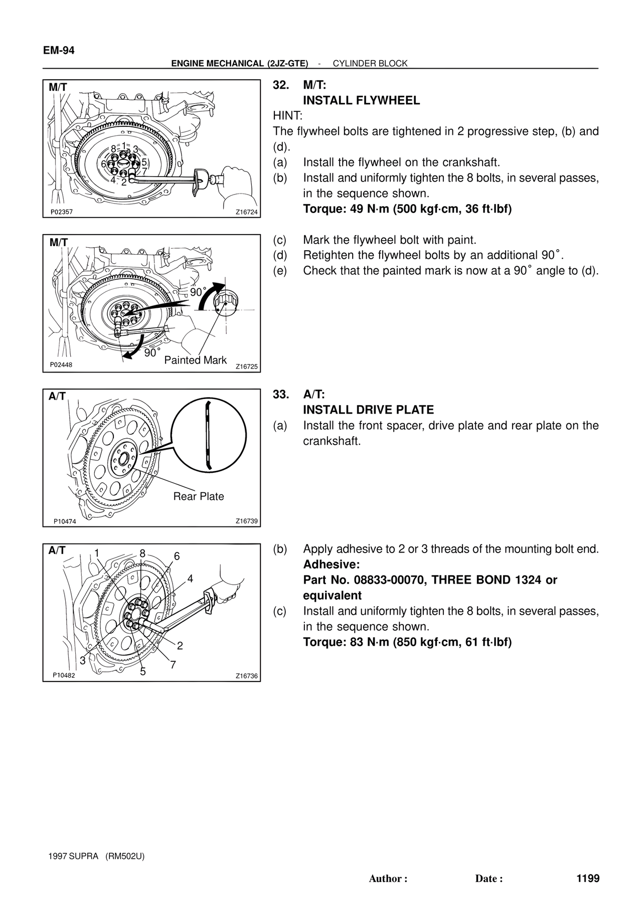 The flywheel bolts are tightened in 2 progressive step, (b) and