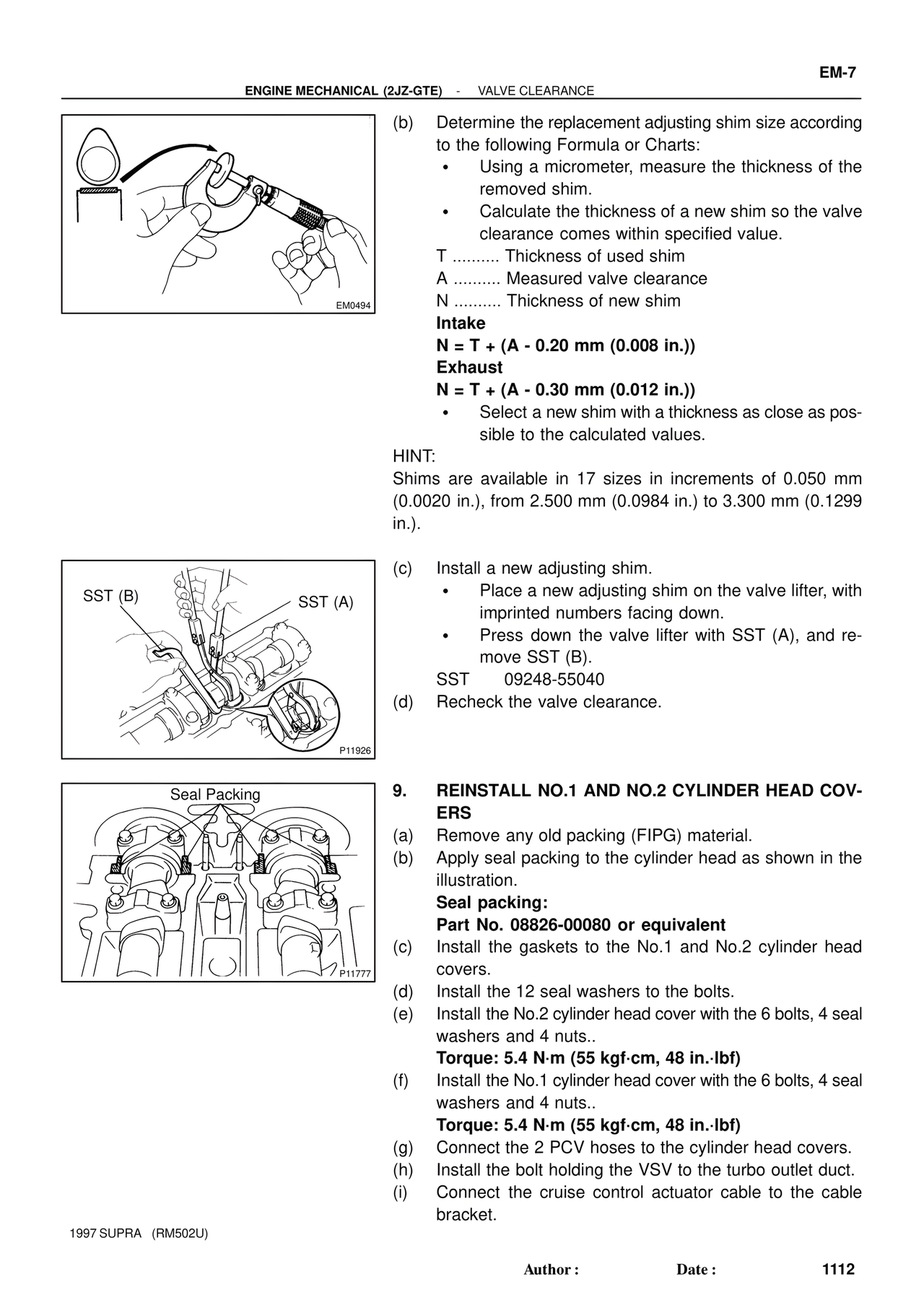ENGINE MECHANICAL (2JZ-GTE) - VALVE CLEARANCE