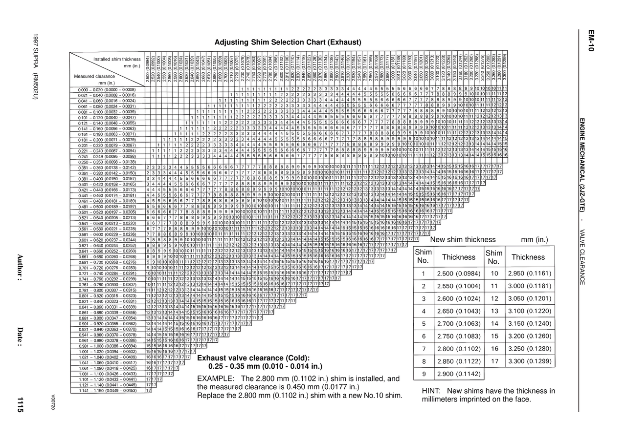 EXAMPLE: The 2.800 mm (0.1102 in.) shim is installed, and the measured clearance is 0.450 mm (0.0177 in.)