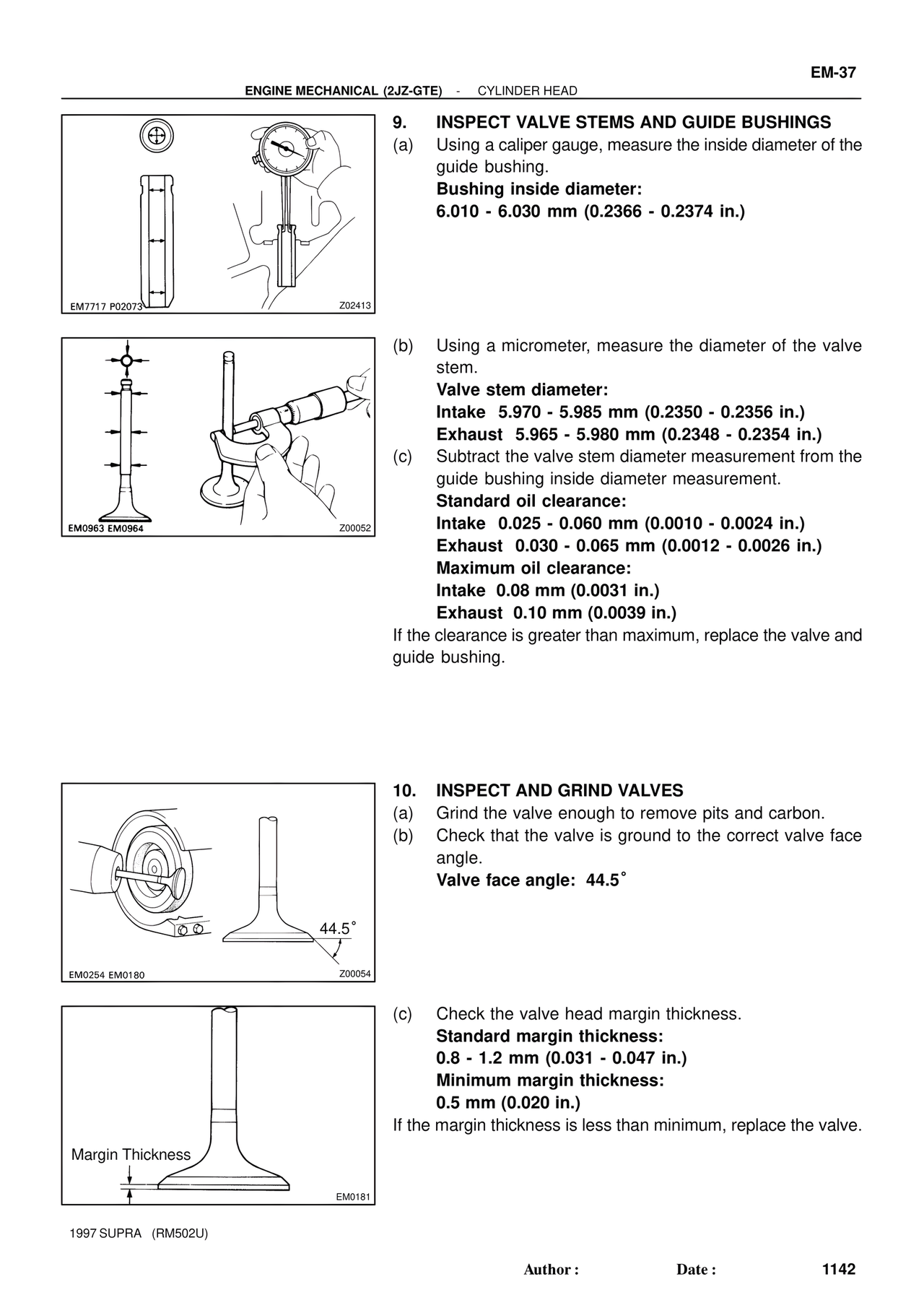 9. INSPECT VALVE STEMS AND GUIDE BUSHINGS