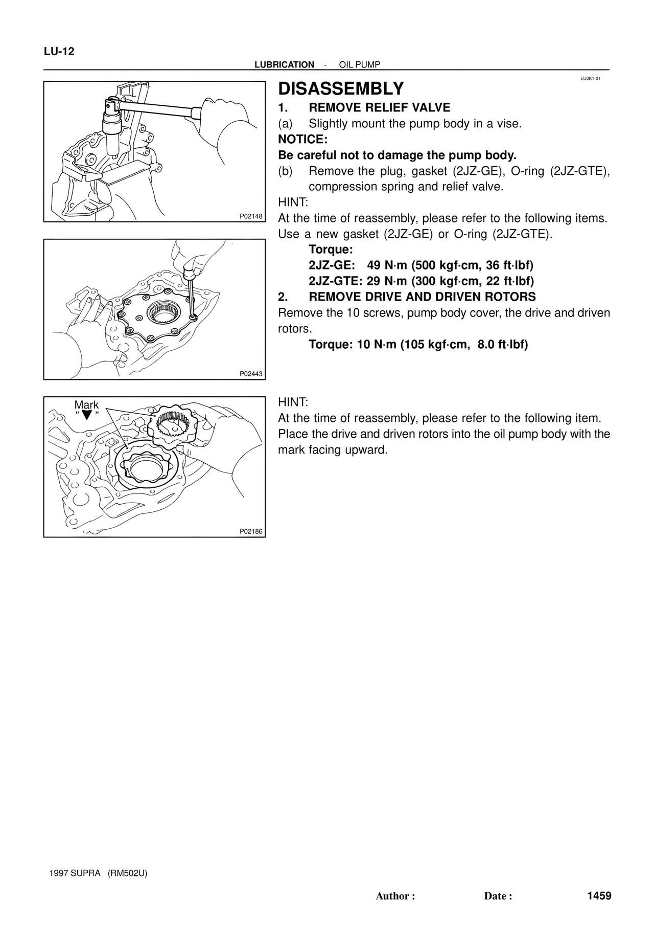 2JZ-GTE: 29 N·m (300 kgf·cm, 22 ft·lbf)