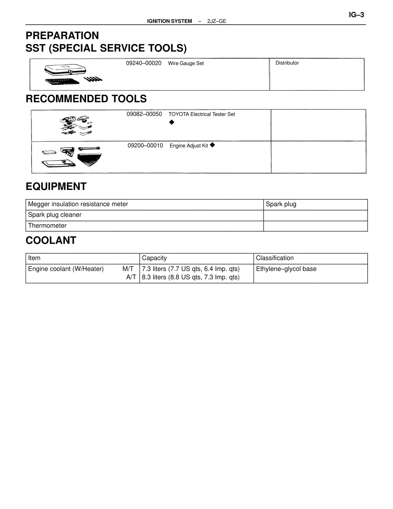 Engine coolant (W/Heater) M/T 7.3 liters (7.7 US qts, 6.4 Imp. qts) Ethylene–glycol base