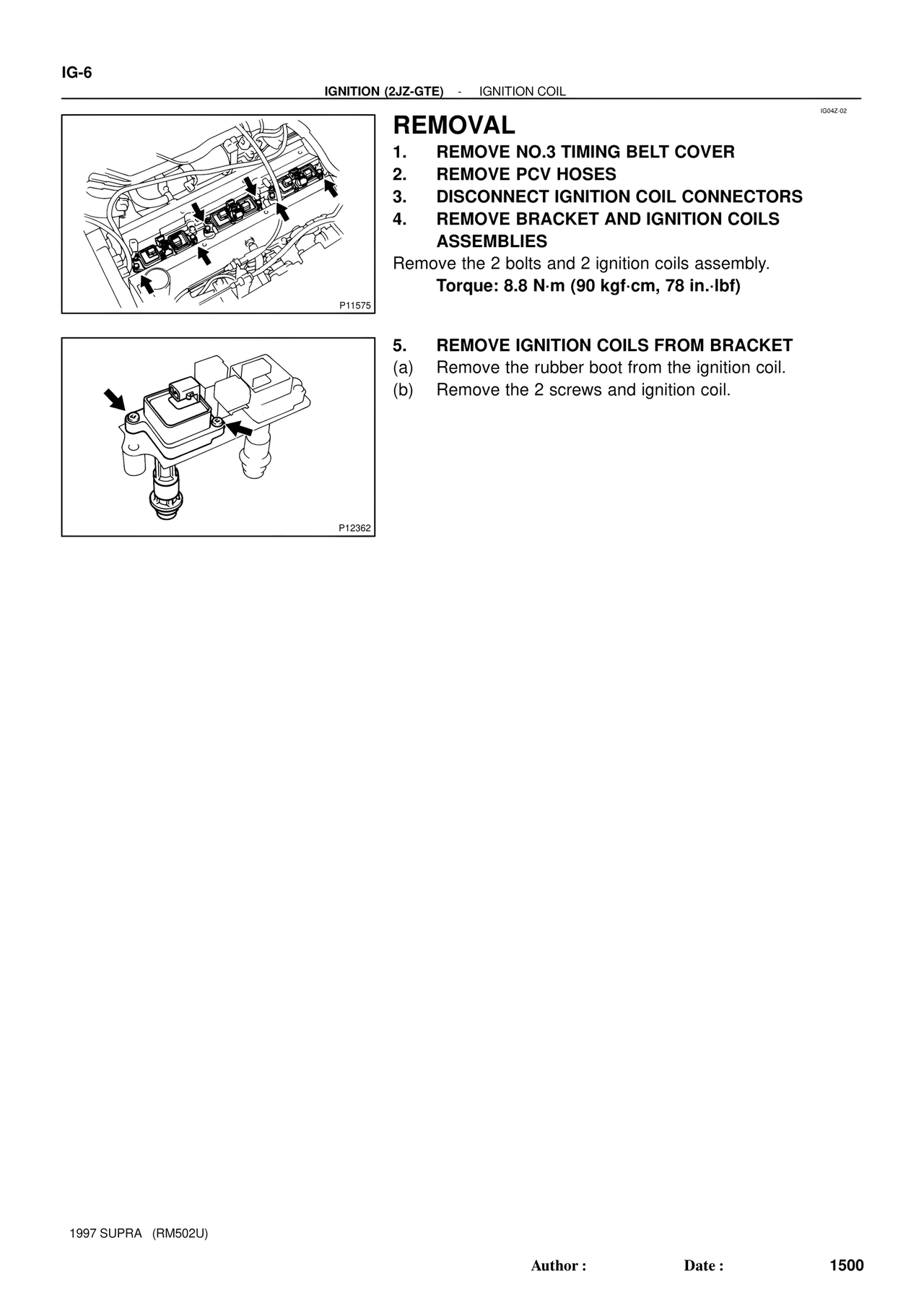 4. REMOVE BRACKET AND IGNITION COILS ASSEMBLIES