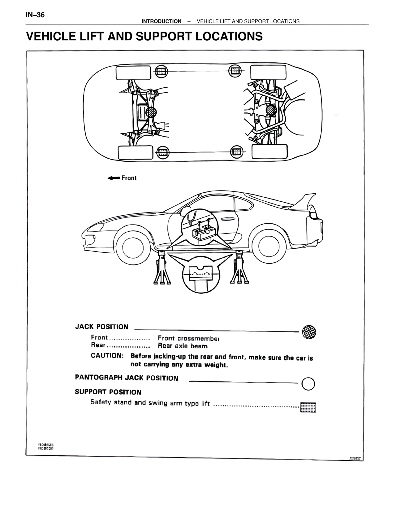 CAUTION: Before jacking-up the rear and front, make sure the car is