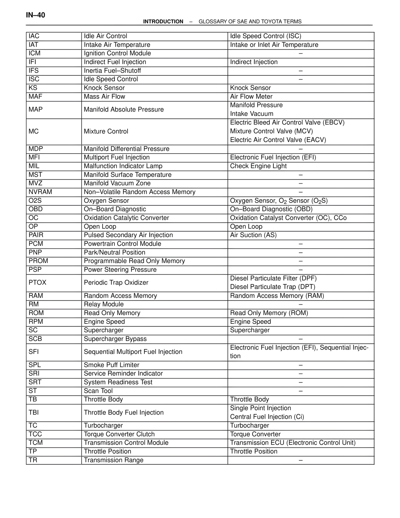 INTRODUCTION – GLOSSARY OF SAE AND TOYOTA TERMS