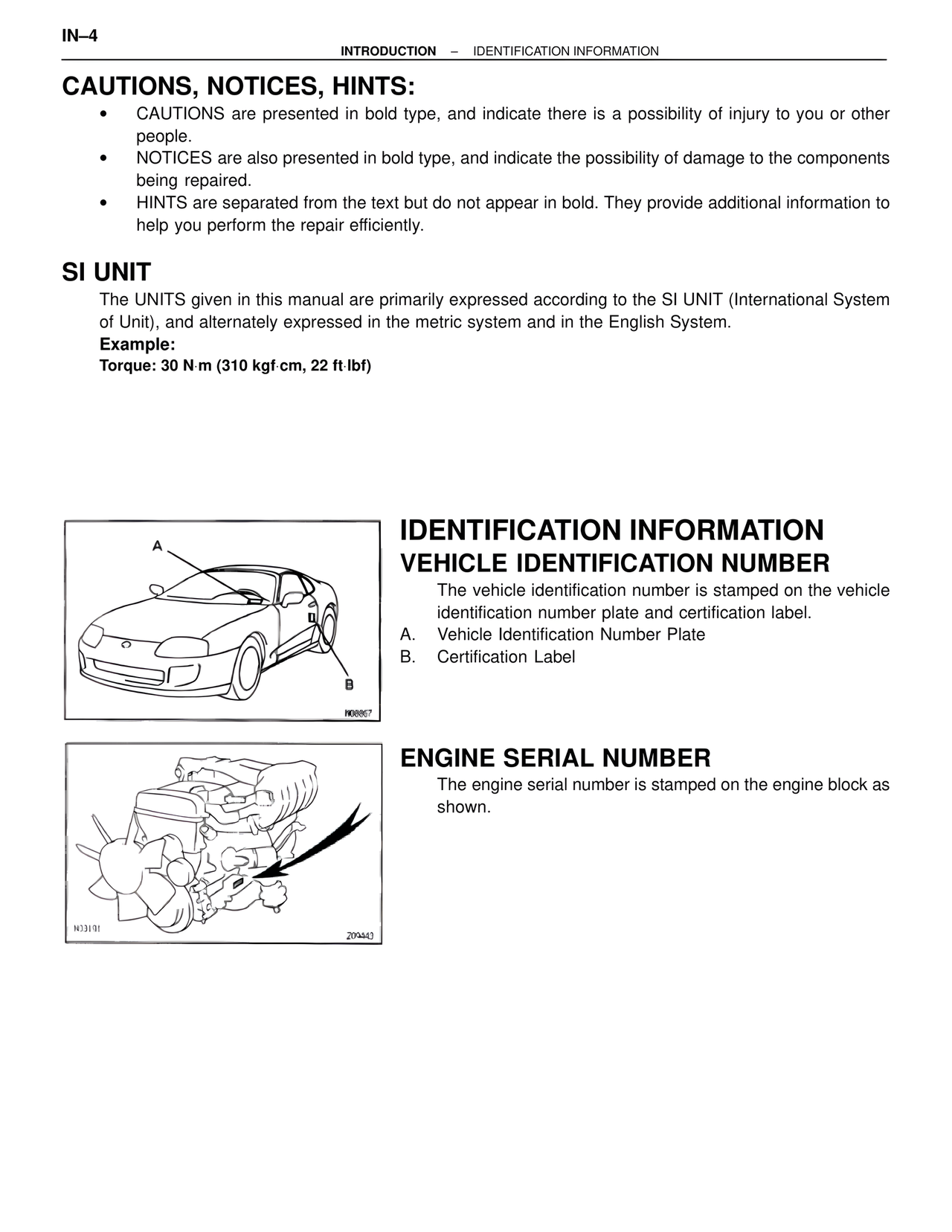 The UNITS given in this manual are primarily expressed according to the SI UNIT (International System of Unit), and alternately expressed in the metric system and in the English System.