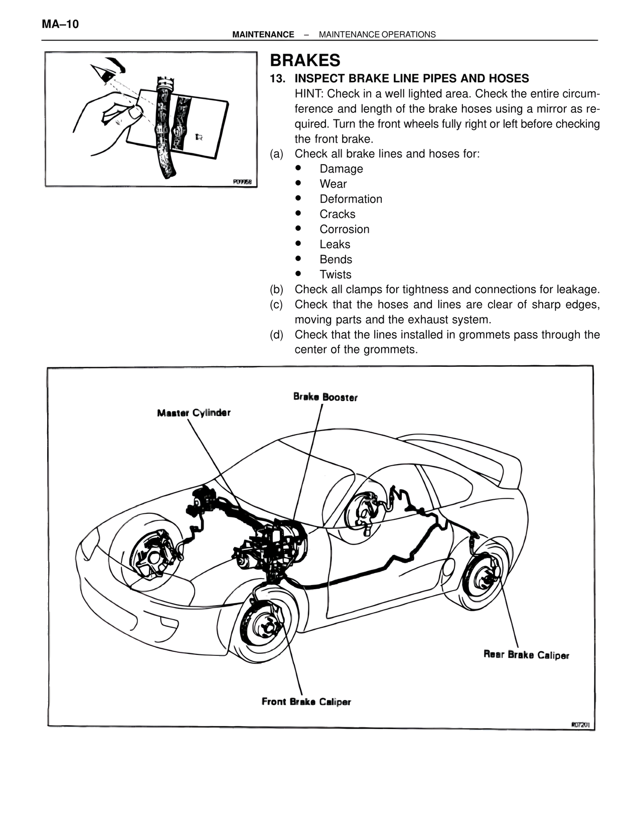 13. INSPECT BRAKE LINE PIPES AND HOSES