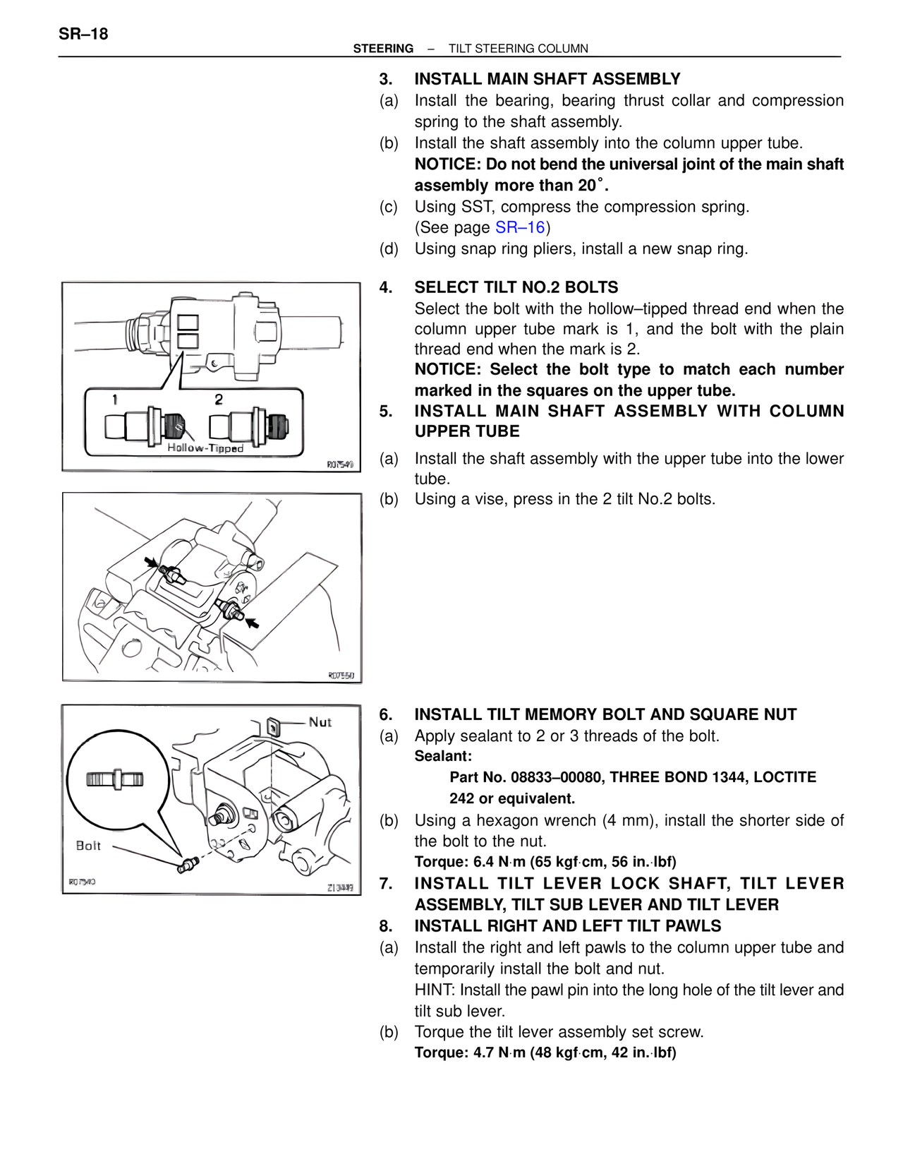 7. INSTALL TILT LEVER LOCK SHAFT, TILT LEVER ASSEMBLY, TILT SUB LEVER AND TILT LEVER