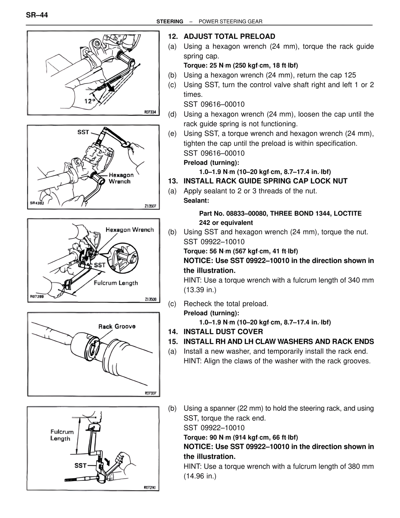(b) Using a spanner (22 mm) to hold the steering rack, and using SST, torque the rack end.