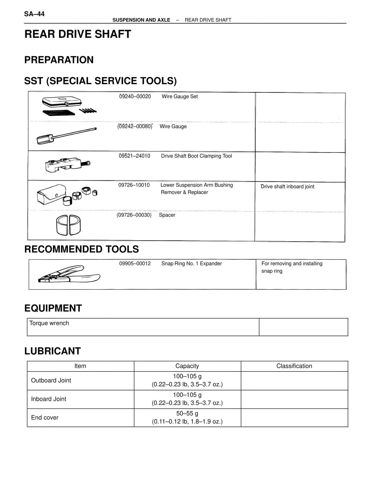SUSPENSION AND AXLE – REAR DRIVE SHAFT