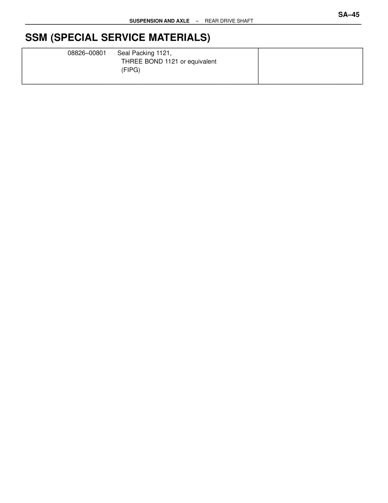 SSM (SPECIAL SERVICE MATERIALS) 08826–00801 Seal Packing 1121, THREE BOND 1121 or equivalent (FIPG)