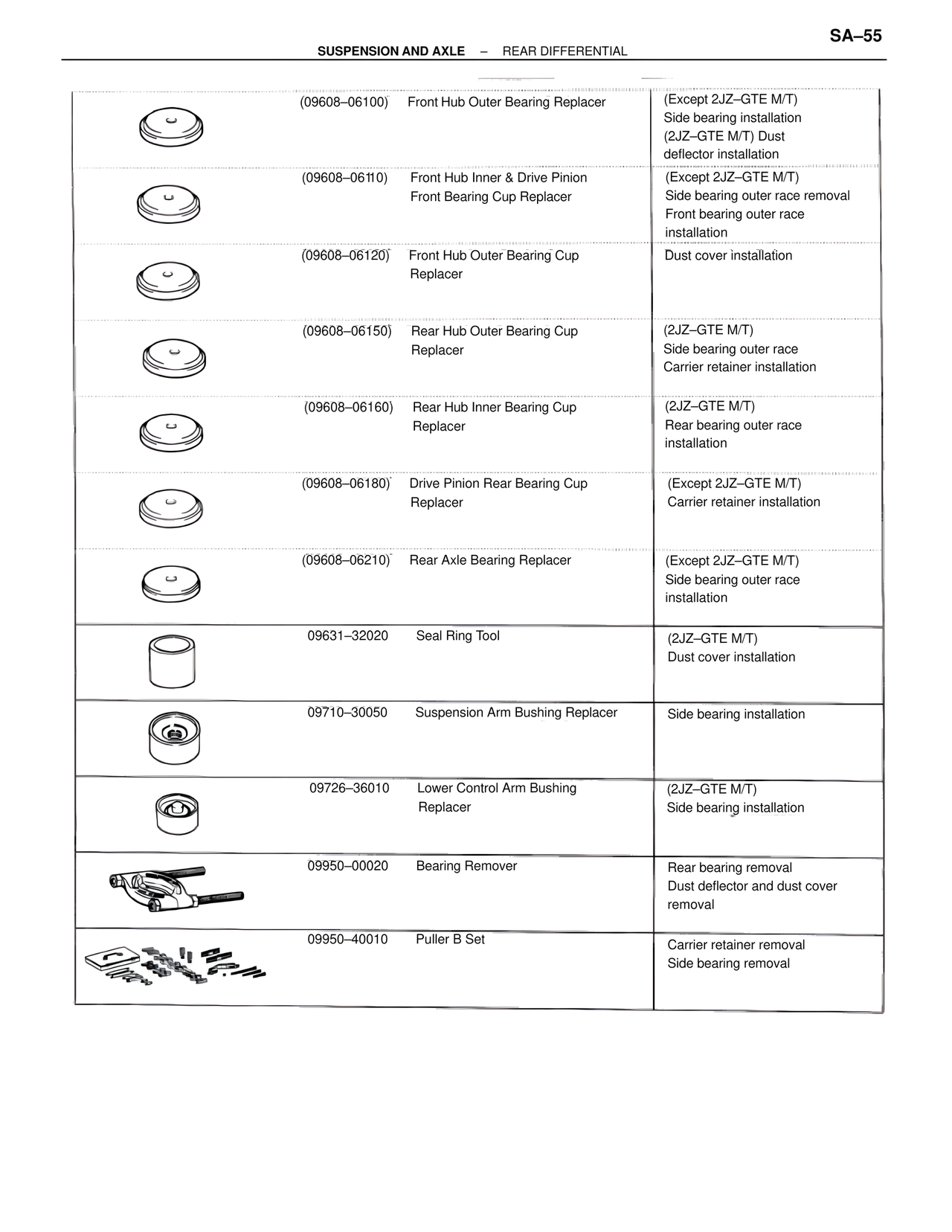 (09608–06210) Rear Axle Bearing Replacer (Except 2JZ–GTE M/T)