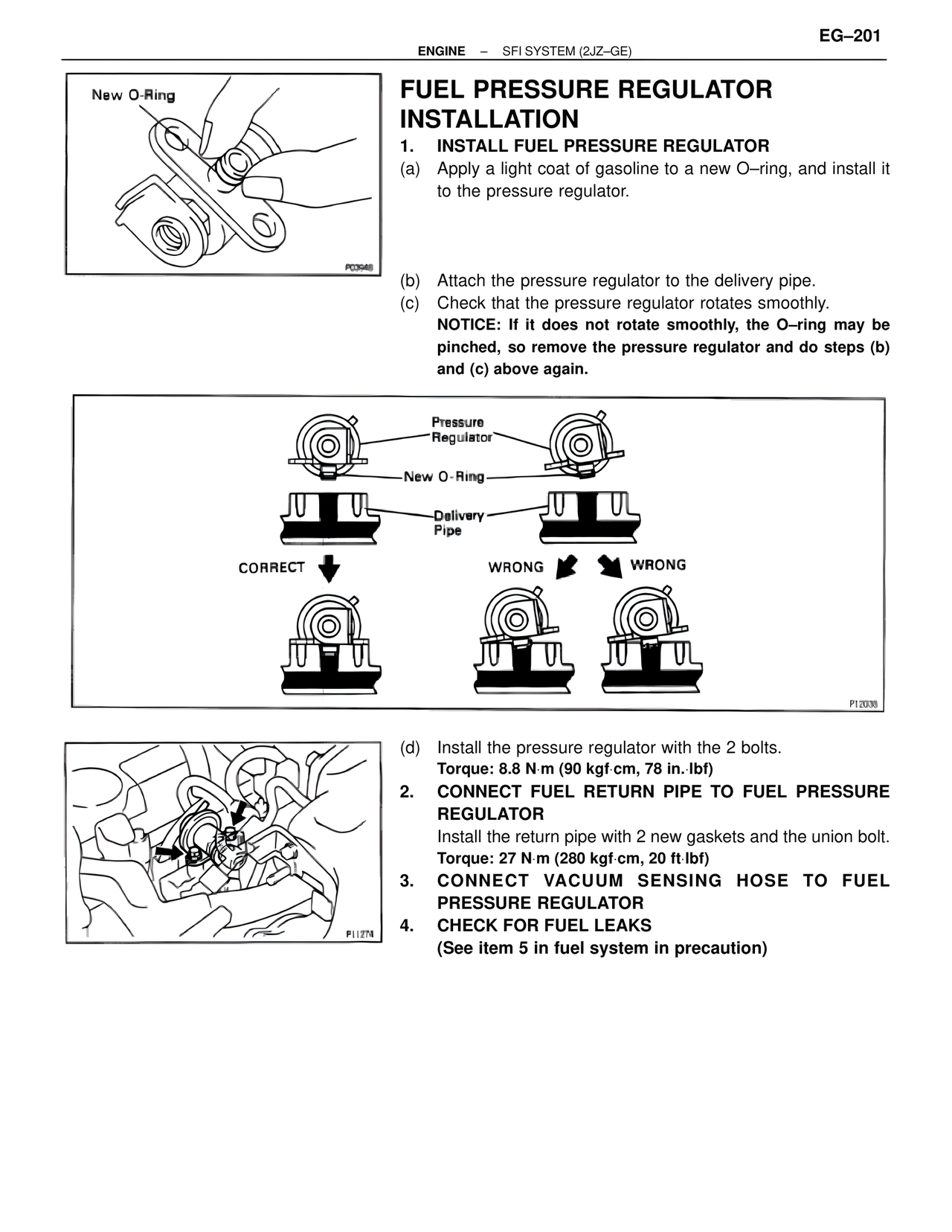 (a) Apply a light coat of gasoline to a new O–ring, and install it to the pressure regulator.