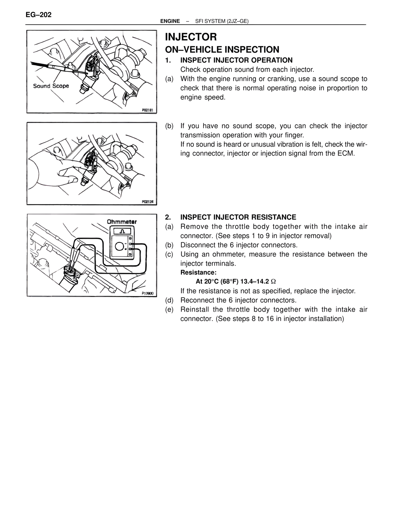 (b) If you have no sound scope, you can check the injector