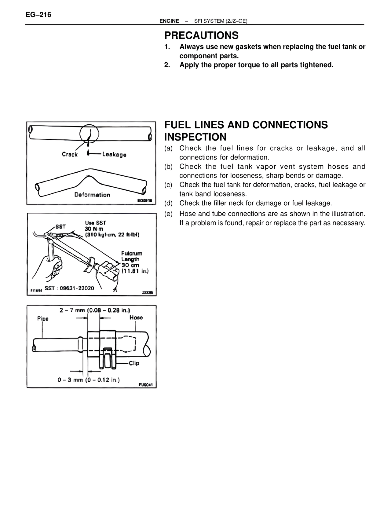 (a) Check the fuel lines for cracks or leakage, and all connections for deformation.