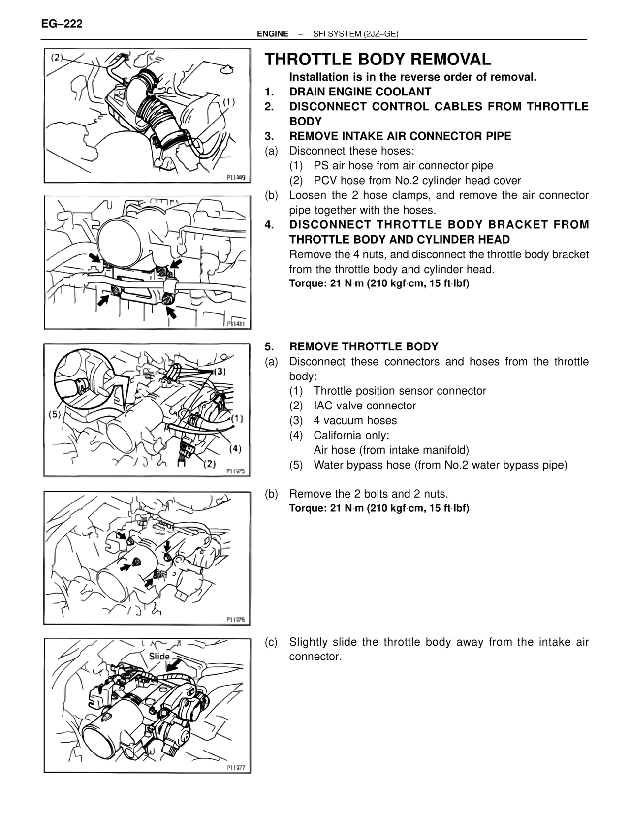 (c) Slightly slide the throttle body away from the intake air connector.