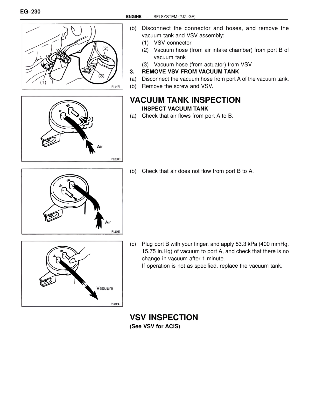 (a) Disconnect the vacuum hose from port A of the vacuum tank.
