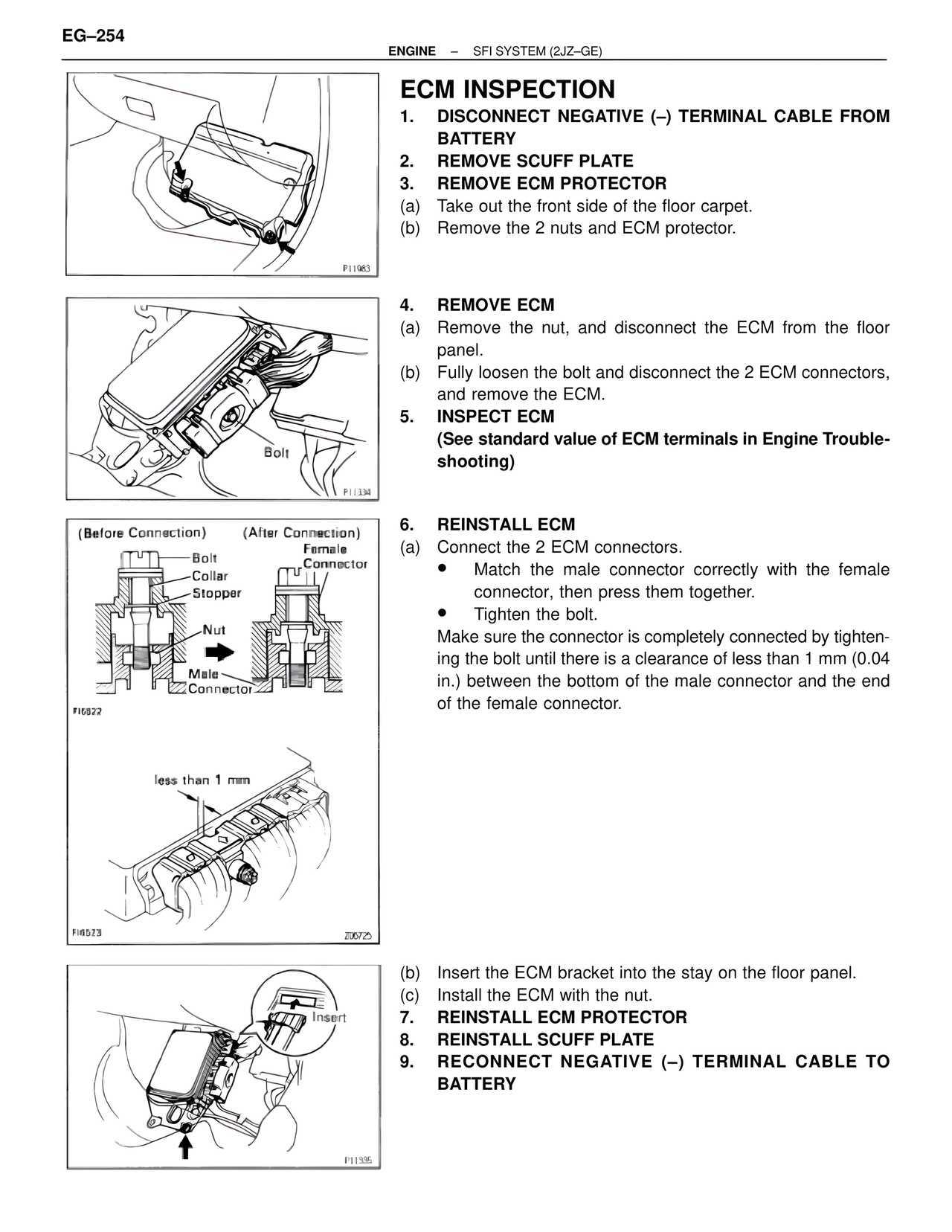 Make sure the connector is completely connected by tightening the bolt until there is a clearance of less than 1 mm (0.04 in.) between the bottom of the male connector and the end of the female connector.